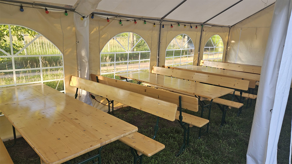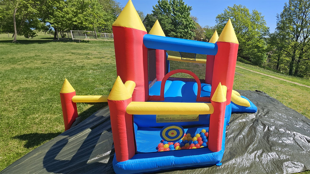 Ausstattung: kleine Hüpfburg, kurze Rutsche